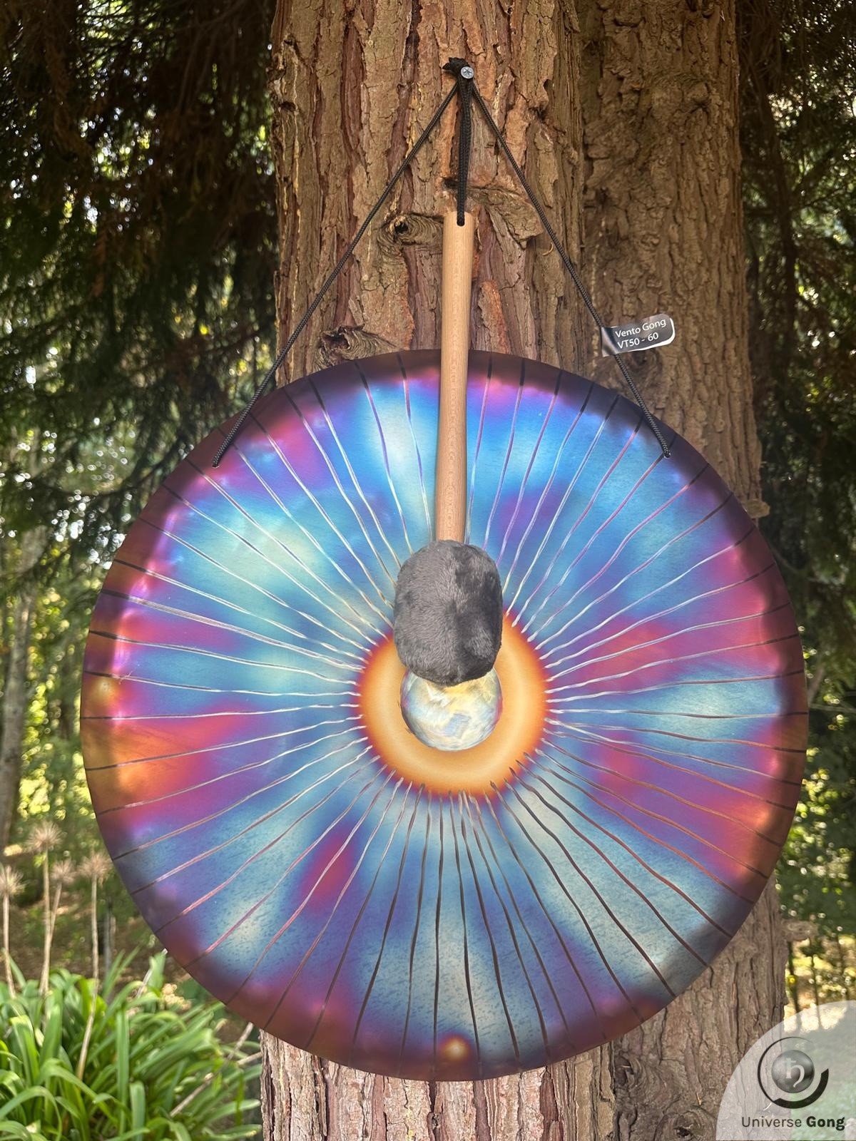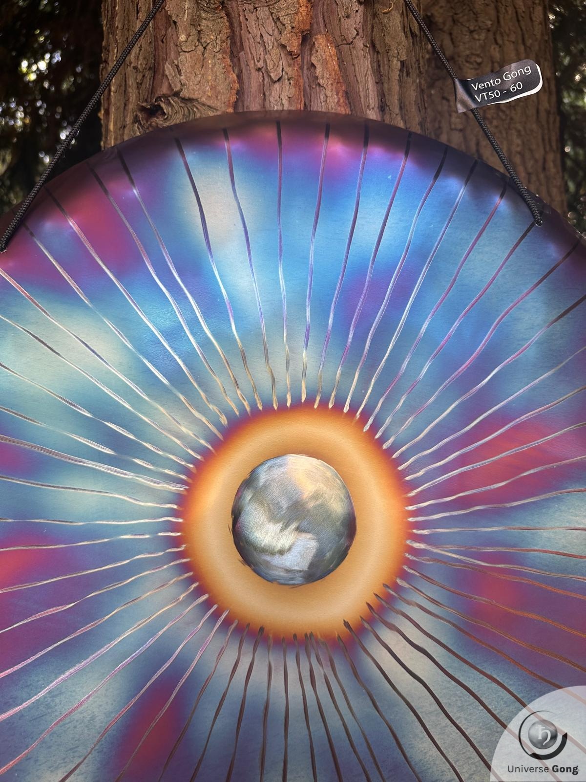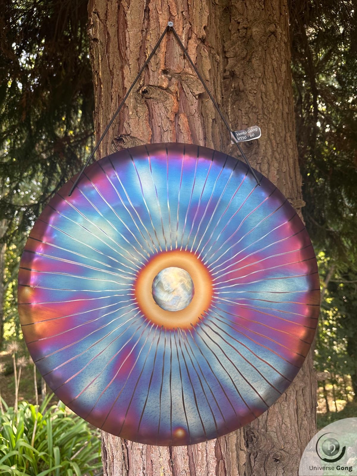 Each Gong is a unique handcrafted piece with colours made with fire. Therefore, it is impossible to manufacture 2 identical gongs.